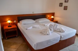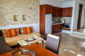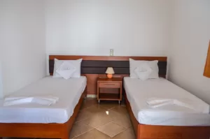 Our two-bedroom apartments at Alexena, where comfort meets elegance with a scenic surrounding of South Crete. Each space is furnished with a choice of a double bed or two singles, catering to your needs.